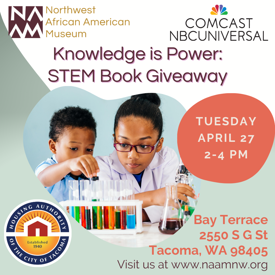 This very special book giveaway is sponsored by Comcast NBCUniversal employees. During Black History Month, employees donated to provide packages of Black STEM-related books to youth in Tacoma and Spokane.